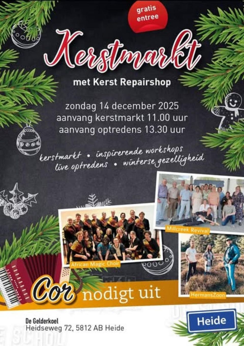 Op zondag 14 december verandert De Gelderkoel in Heide in een sfeervol winterdecor tijdens de Kerstspecial van Cor Nodigt Uit…. Je kunt rekenen op een dag vol warme kerstsfeer, live muziek, inspirerende workshops en een gezellige markt boor...