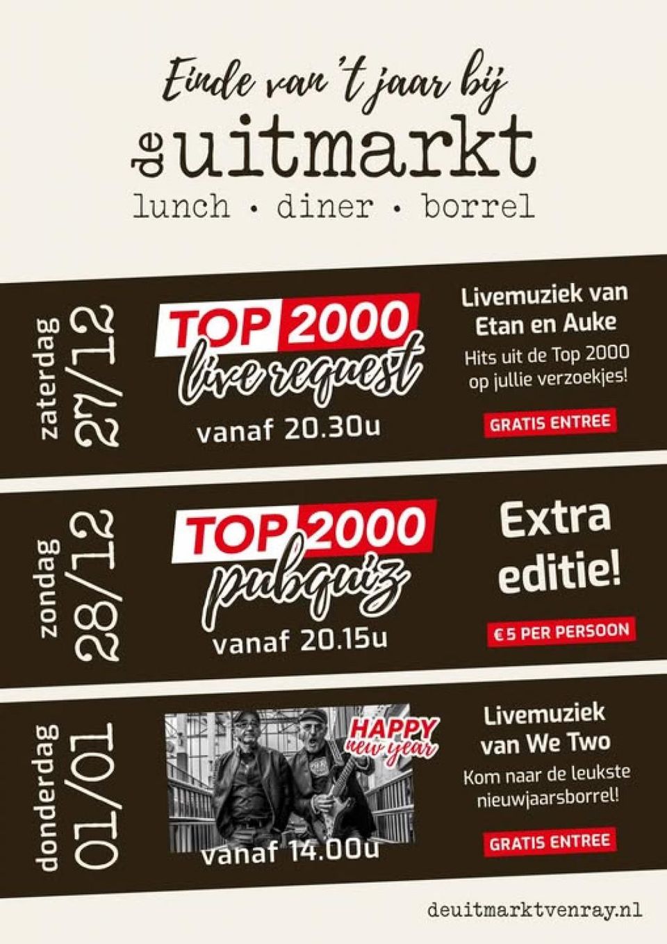 Als onderdeel van de feestmaand staat deze avond in het teken van de Top 2000. Etan & Auke spelen live jullie verzoeknummers, jullie bepalen dus! De entree is gratis en de muziek start om 20.30 uur.