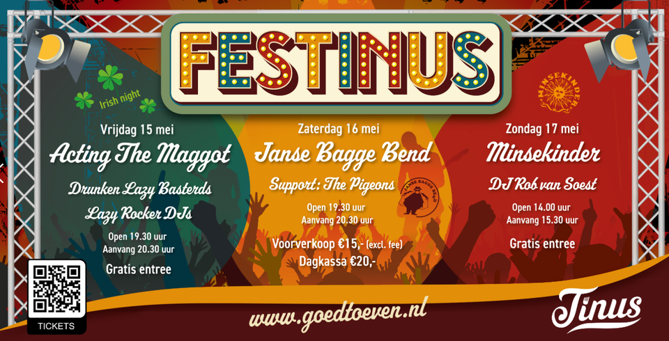Drie dagen lang staat Goed Toeven bij Tinus in het teken van live muziek en gezelligheid. Van vrijdag 15 mei tot en met 17 mei. Er staan verschillende artiesten op het programma. Het beloofd een feestelijk weekend te worden. Op vrijdag en zondag is entree gratis. Wees erbij!